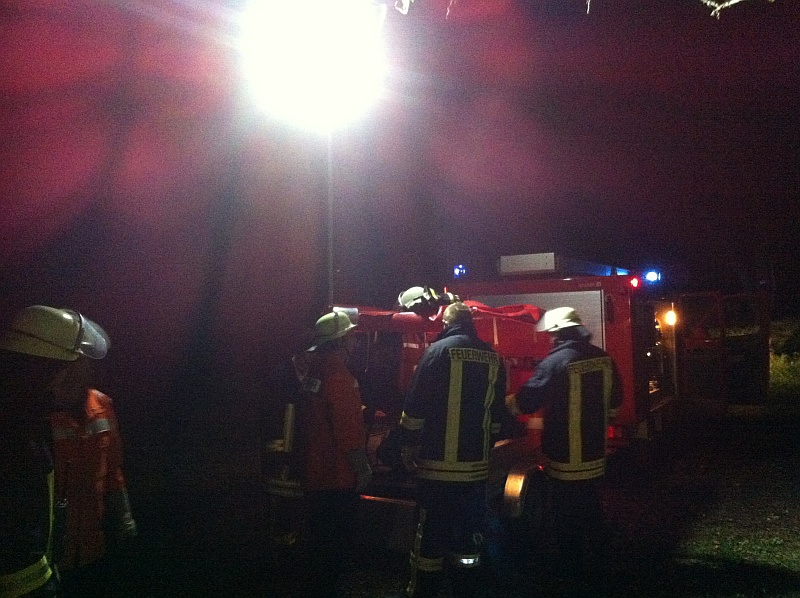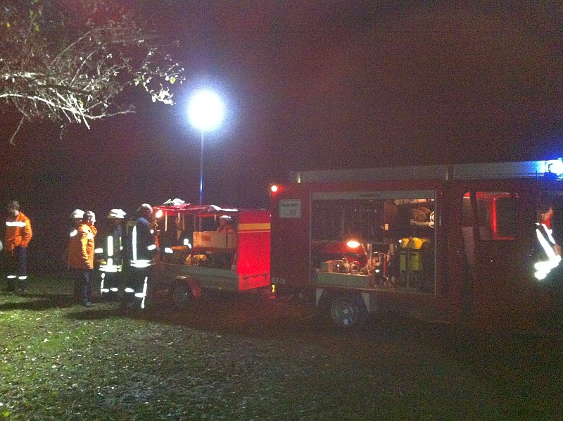 Am 18. Oktober um 18.45 Uhr führten wir eine Einsatzübung mit Sirenenalarmierung durch. Am Funk war zu hören dass es zu einen „umgestürzten Baum auf PKW mit starker Rauchentwicklung“ gehen sollte. Schon auf der Anfahrt war zu sehen dass aus der Rauchentwicklung ein offenes Feuer geworden ist. Nach Erkundung der Einsatzstelle stellten wir noch fest dass unter dem Baum noch eine eingeklemmte Person sich befand. Als erstes wurde sich um die verletzte Person gekümmert und parallel dazu mit dem Hochdrucklöschgerät das Feuer gelöscht. Inzwischen wurde die Einsatzstelle ausgeleuchtet um gefahrloses weiterarbeiten zu gewährleisten. Es gelang den Kameraden den Baum etwas anzuheben und nach dem Ausschluss einer Wirbelsäulenverletzung die verletzte Person vorsichtig ein Stück unter dem Baum hervor zu ziehen. Nun konnte die Platzwunde am Kopf verbunden werden und sich um den verletzten Arm gekümmert werden. Zum Schluss wurde mit Hilfe der Kettensäge der Baum zerkleinert und vom PKW entfernt. |