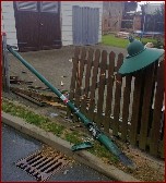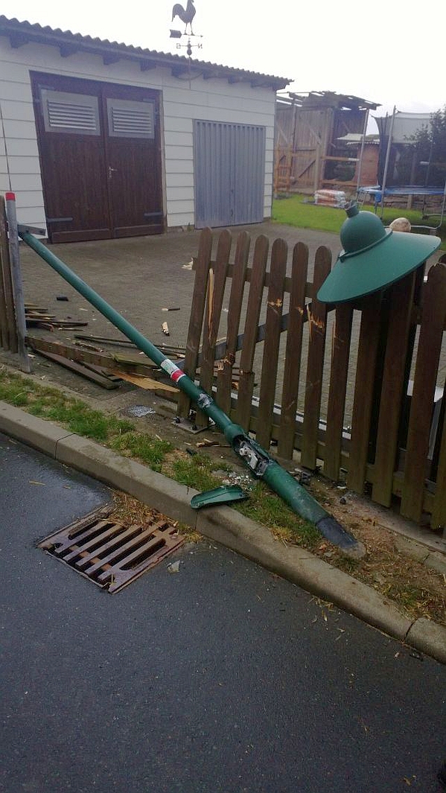 Ein PKW vom Typ VW kam am Ortsausgang Naitschau Richtung Erbengrün von der Fahrbahn ab, wobei er eine Straßenlampe und einen Gartenzaun umfuhr. |
