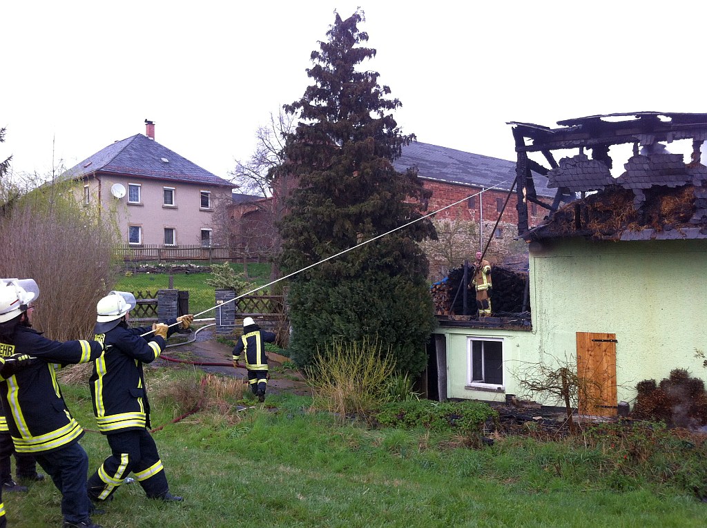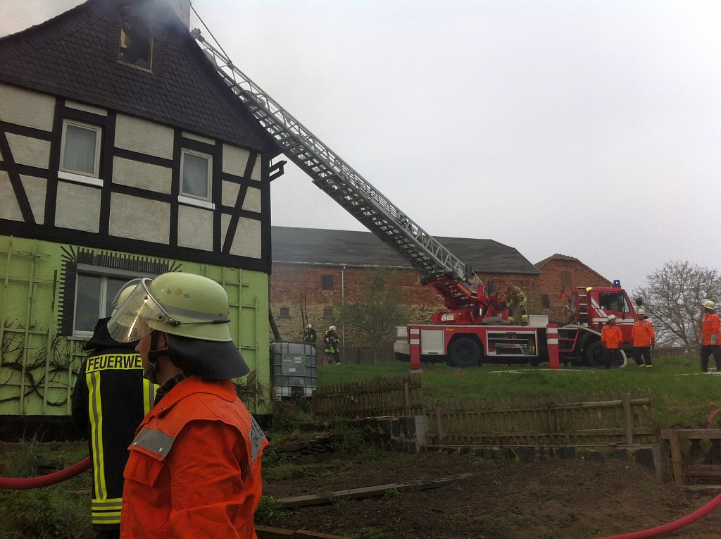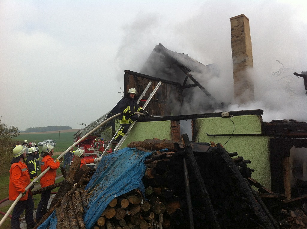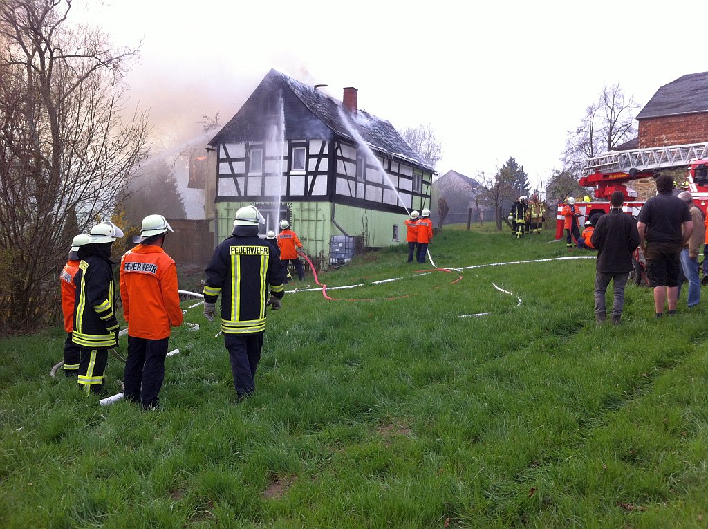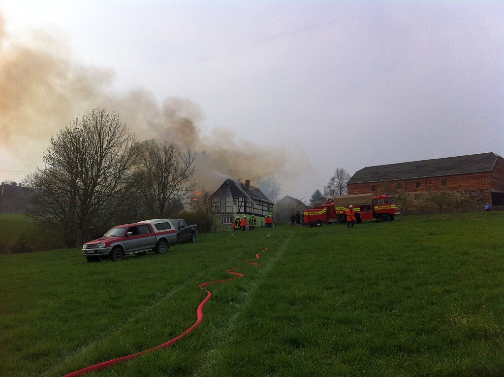 Um 16.14 Uhr wurden wir zu einem Brand eines Fachwerkhauses nach Kauern gerufen. Unsere Wehr baute eine Löschwasserversorgung von einem Teich aus auf. Nach dem Löschen des Brandes unterstützten wir dann noch bei Aufräumungsarbeiten. |
