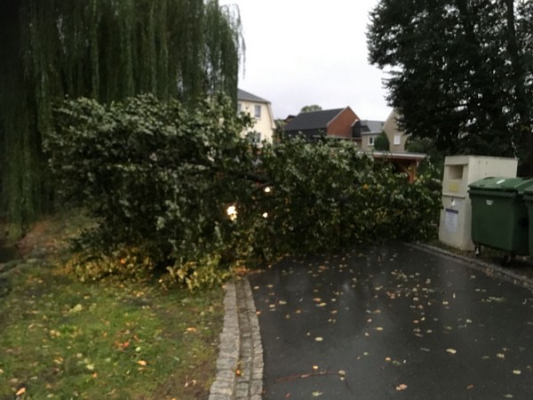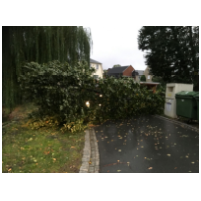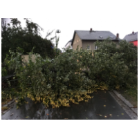 Eine halbe Stunde nach dem ersten Einsatz an diesem Tag, wurden wir zu einer umgestürzten Blaufichte an einer Garagenanlage im oberen Dorf gerufen. Der Baum blockierte mehrere Garagenausfahrten. Die Einsatzstelle wurde von uns ausgeleuchtet und der Baum entfernt. | |||||