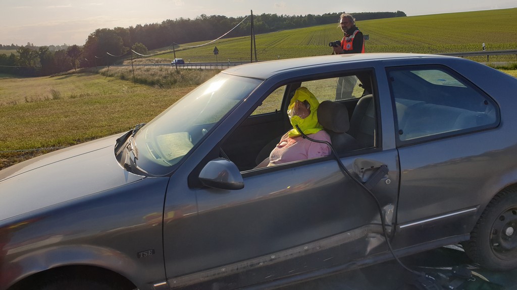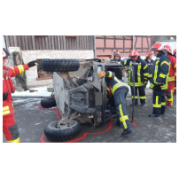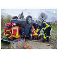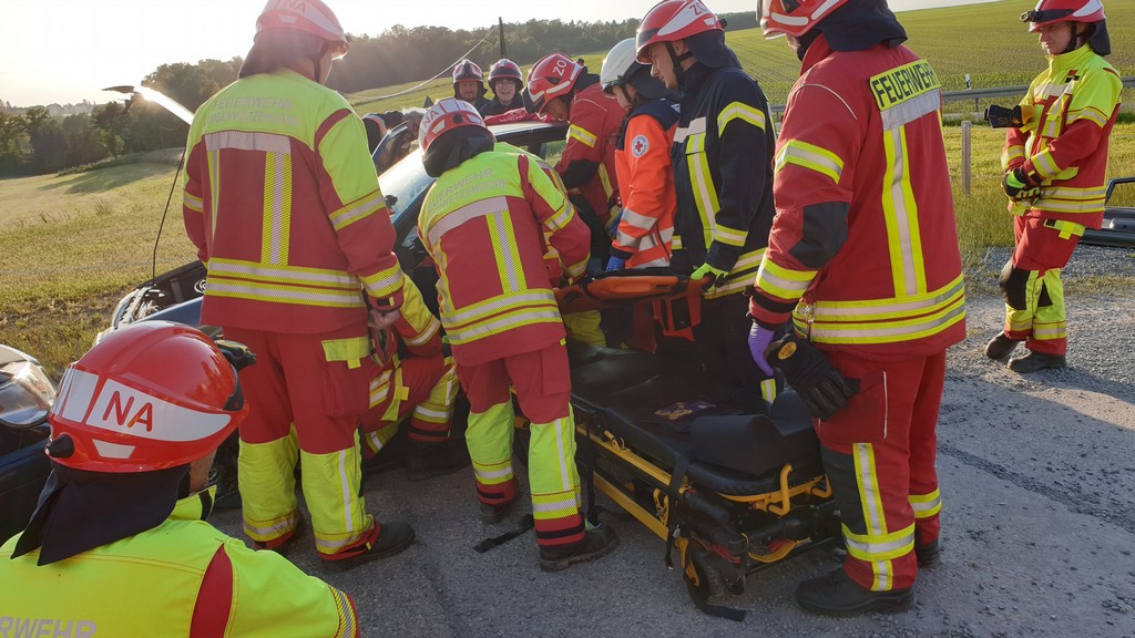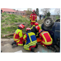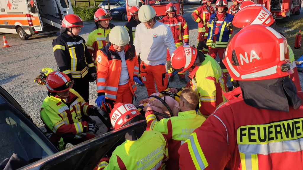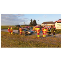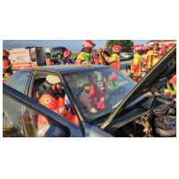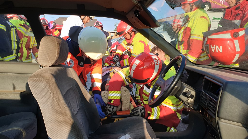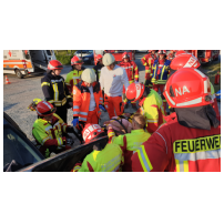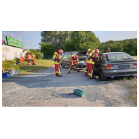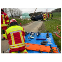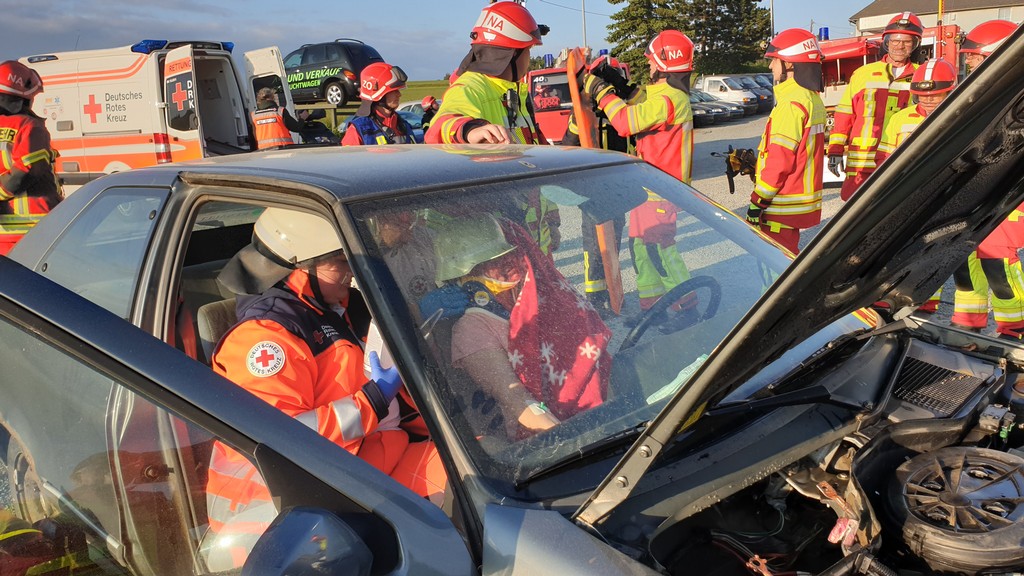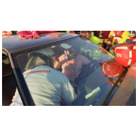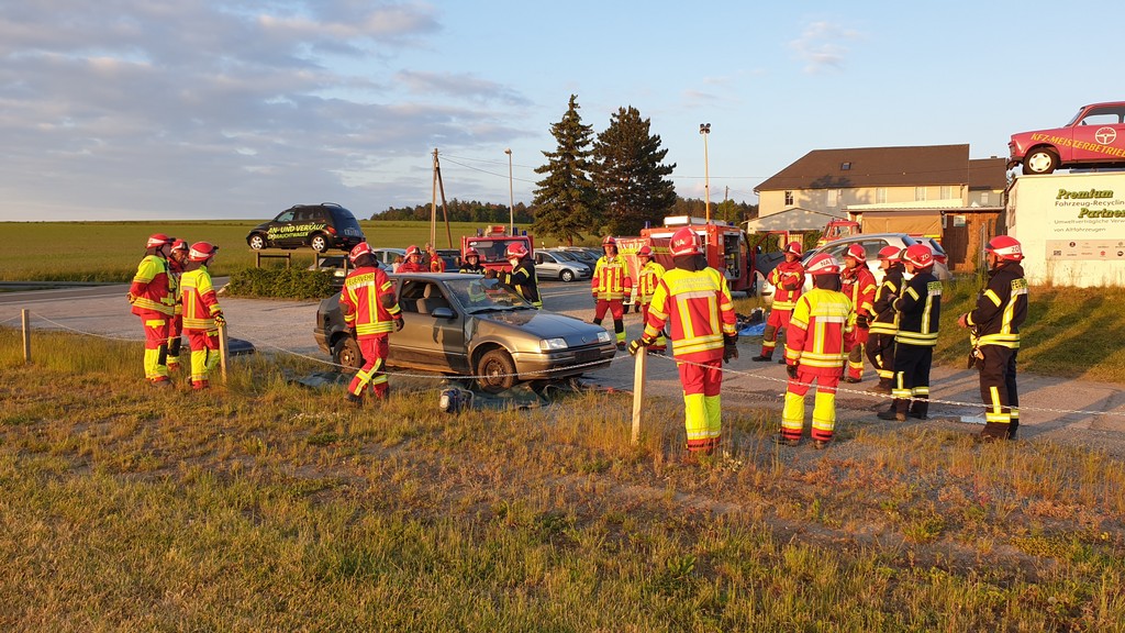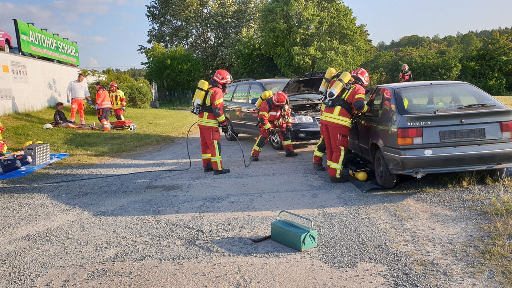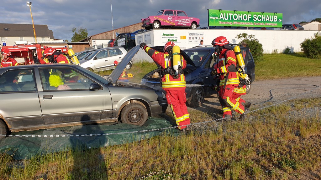Einsatzübung durch. Es wurde auf dem Autohof Schaub ein VKU zwischen zwei PKW nachgestellt.