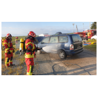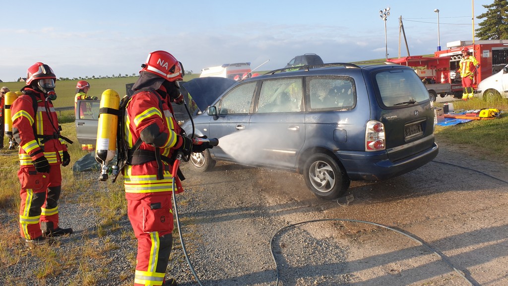 Fahrer vor den Rauch geschützt und unter schweren Atemschutz wurde das Fahrzeug