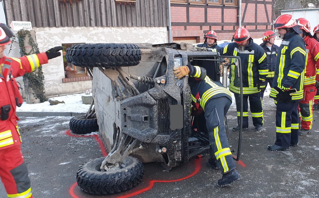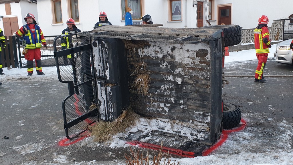 In der Ortslage Wellsdorf kam es zu einen VKU zwischen einem Quad und einem PKW. Hierbei überschlug sich das Quad und blieb auf der Seite liegen. Der Fahrer des Quads wurde vom Rettungsdienst versorgt. Unsere Aufgabe bestand im Absichern und Beräumen der Einsatzstelle. |
