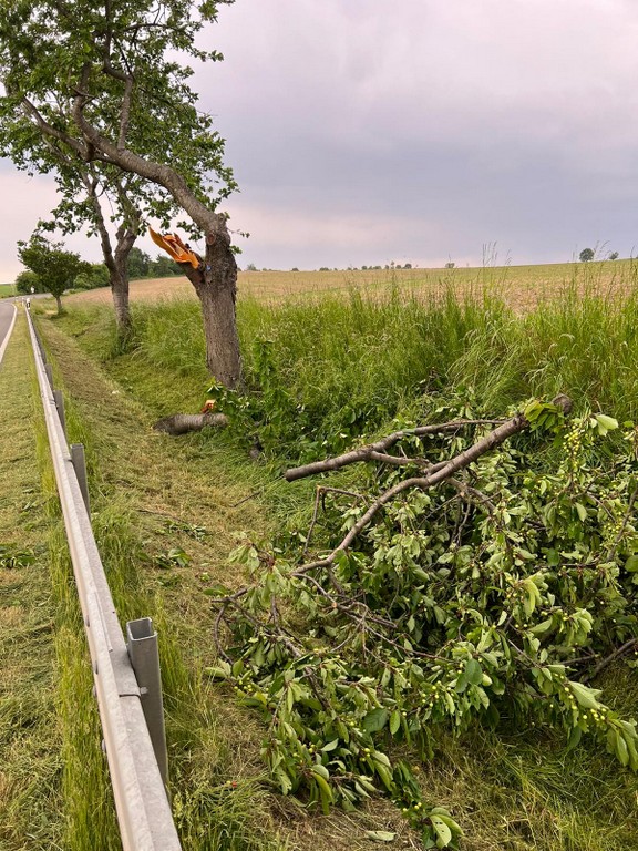Ein abgebrochener Ast eines Kirschbaumes auf der B 94 wurde aus den Gefahrenbereich der Bundesstraße entfernt. |