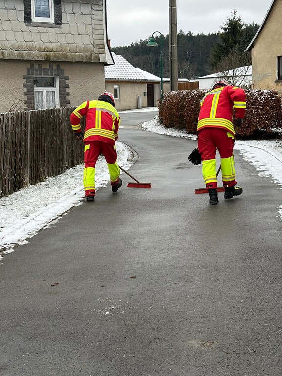 Wir wurden zu einer Ölspur in der Ortslage Wellsdorf gerufen, die durch ein Winterdienstfahrzeug verursacht wurde. Es betraf überwiegend die Seitenstraßen. Im späteren Verlauf kamen die Orte Erbengrün und Naitschau noch hinzu. |
