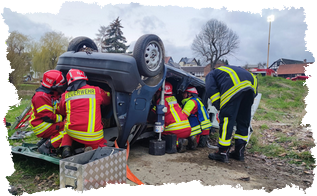 von der Straße ab und fuhr gegen eine Böschung. Beim Eintreffen unserer Wehr