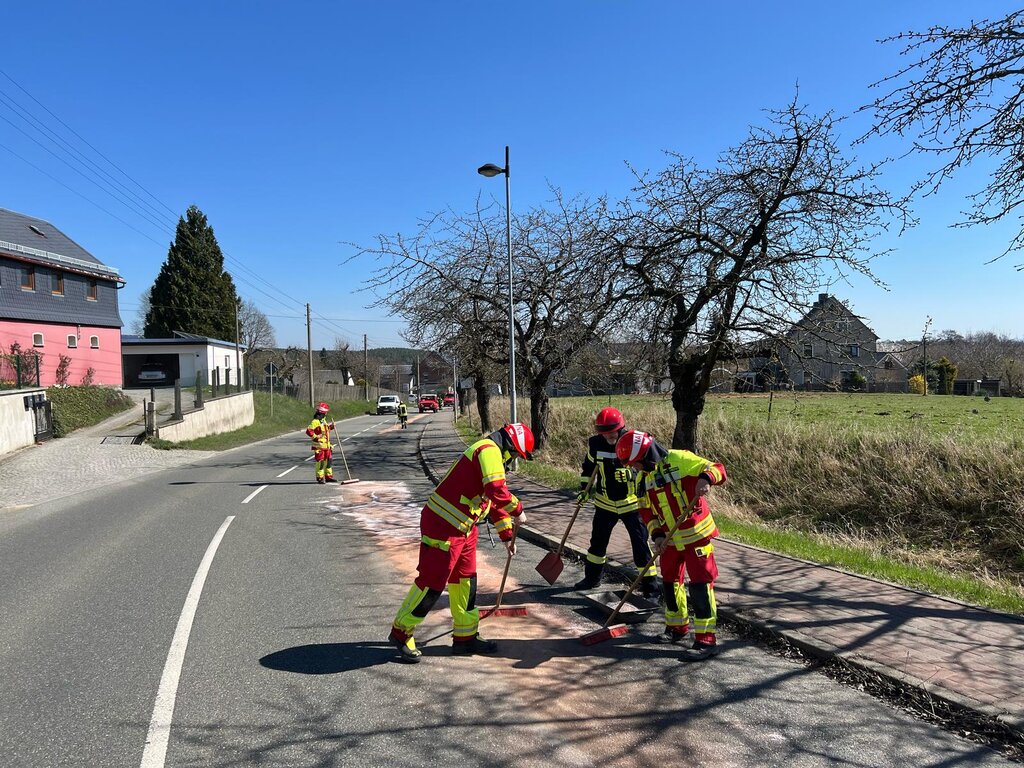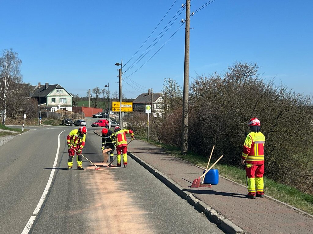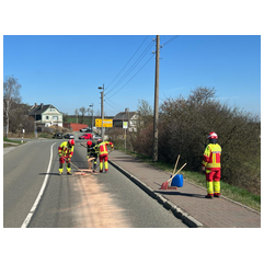 Wir wurden zu einer Dieselspur zwischen Zoghaus und Erbengrün gerufen. Zusammen mit der Feuerwehr Zoghaus haben wir die Spur gebunden. Durch die Straßenbaulastträger wurden dann noch Hinweisschilder gestellt. |